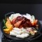 강원도 춘천에서 직접 재배한 계절 야채와 향신채로 만든 닭갈비와 감자전입니다. 닭갈비는 5-6월 수확한 햇마늘로 당도를 맞추고 있습니다. 건강한 재료를 깨끗하게 손질해 음식을 만들고 있습니다
